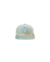Front view of the blue patchwork denim jacket highlighting its boro-style repairs and oversized fit Side view showing ribbed collar and cuff details